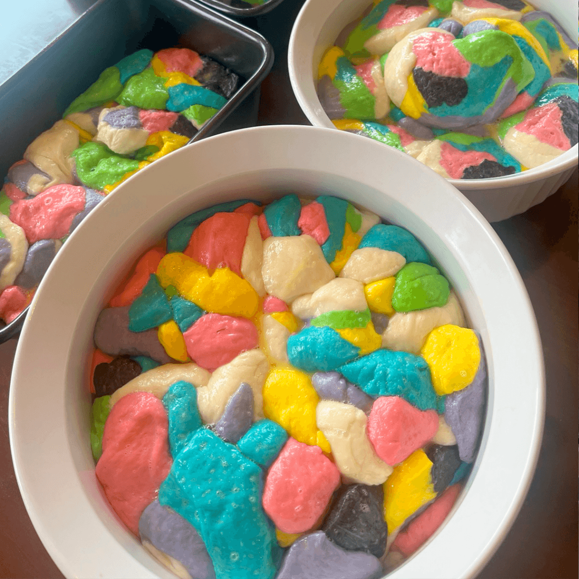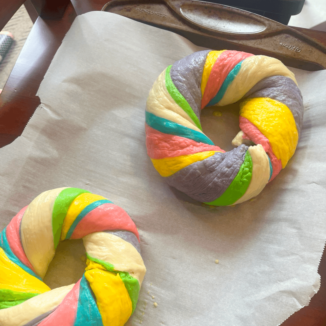 An idea formed; our family already loves making and sharing buns and bread, and people love receiving fresh bread, so could we color bread to tell a story?